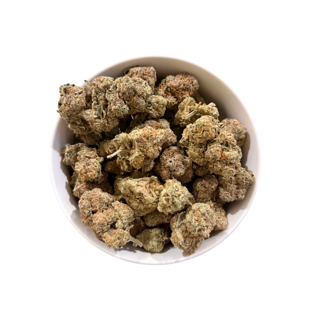 Black Cherry Soda is a sativa-dominant cannabis strain featuring an approximate 20/80 indica-to-sativa ratio, widely recognized for its striking visual appeal and distinctive aroma. The buds are notably dense and eye-catching, coated in a thick layer of crystal-like trichomes with vibrant orange pistils woven through shades of light green and deep purple. This strain is often described as visually impressive, with a structure and coloration that set it apart. Black Cherry Soda is known for a sweet, berry-forward aroma frequently compared to Blue Dream, and its flavor profile closely mirrors that scent. In cannabis culture, it is commonly associated with an uplifting, cerebral experience that begins in the head and gradually spreads through the upper body, producing a noticeable tingle in the shoulders and neck. Due to these characteristics, the strain is often discussed in relation to mood elevation and stress relief, although individual experiences may vary and it is not a substitute for professional medical care.